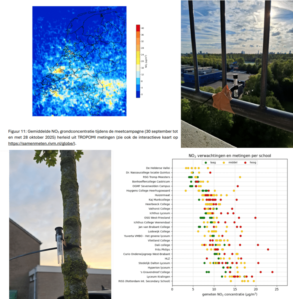 Dit najaar hebben 26 scholen deelgenomen aan de GLOBE NO₂-campagne. Dankzij financiering vanuit NSO (Netherlands Space Office) en samenwerking met provincies en gemeenten hebben leerlingen meer dan 360 (gratis) Palmesbuisjes opgehangen om stikstofdioxide (NO₂) te meten.